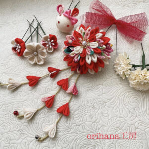 茅ヶ崎在住の日本伝統技法つまみ細工『orihana工房』髪飾りのレンタル始めました!(岡田のお友達です!)